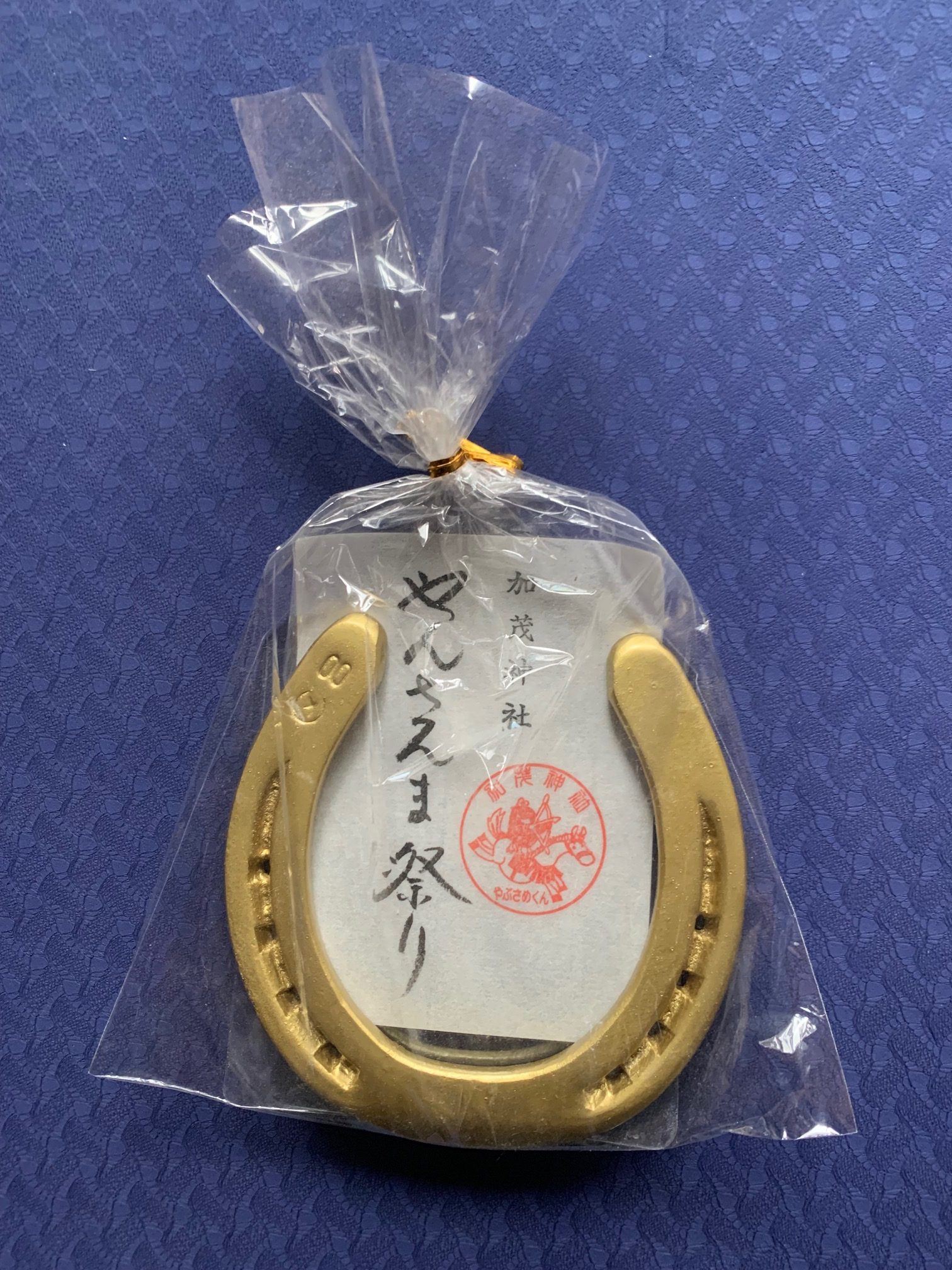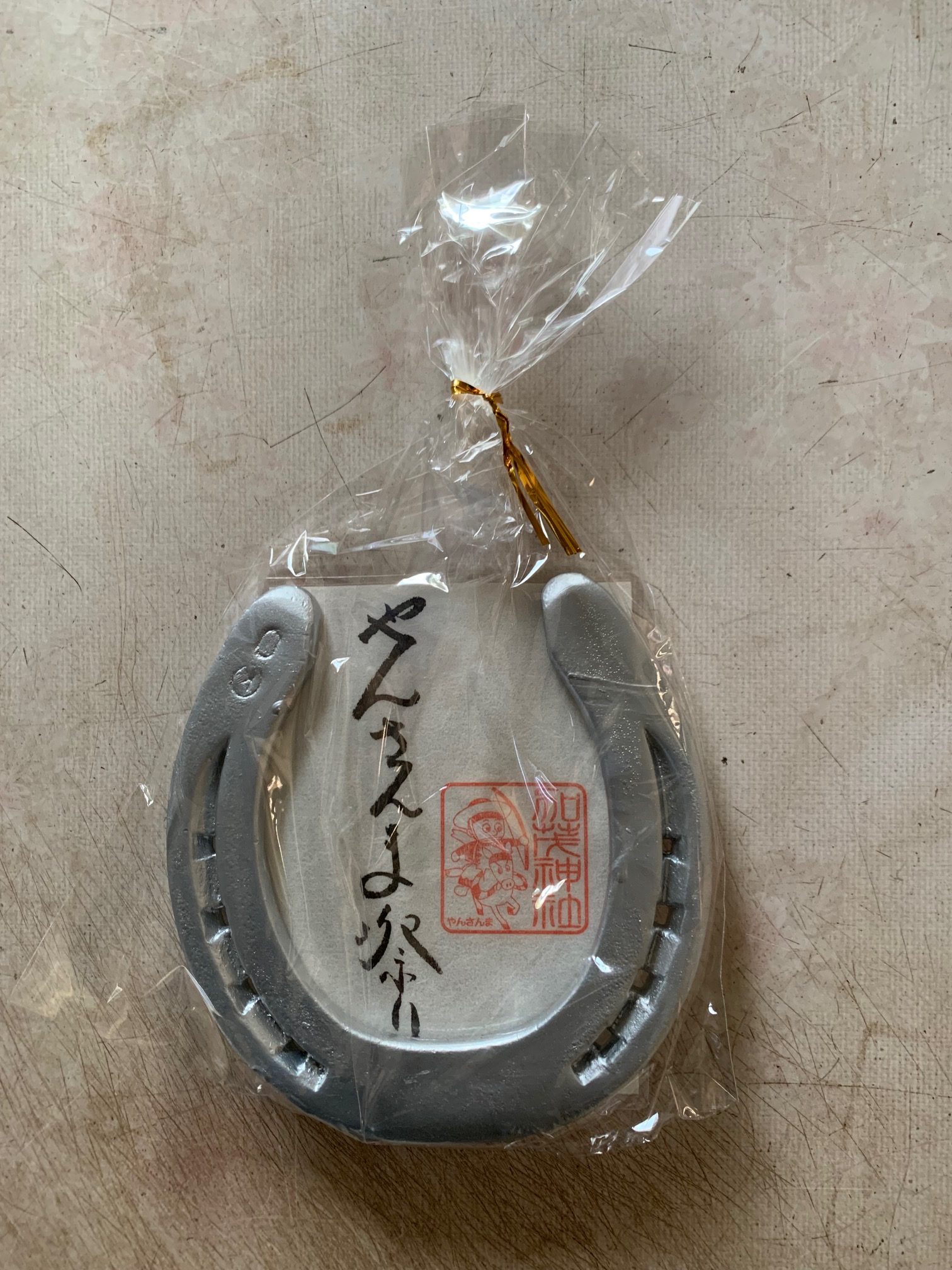 加茂神社では、蹄鉄をきれいに磨いて装飾して頒布しています。数に限りがありますのでお早めにお求めください。