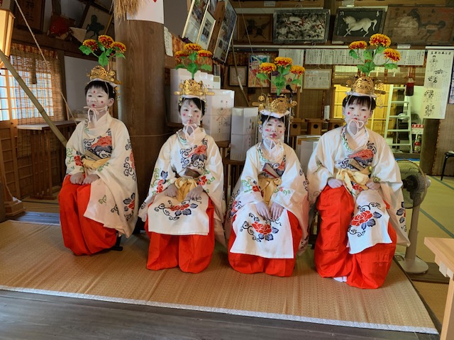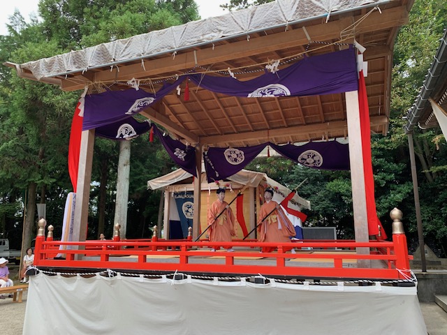 9月4日、秋季例祭 稚児舞が奉納されました。前日からの雨予報にもかかわらず、奉納終了まで天気が持ち、片付け後に土砂降りとなりました。